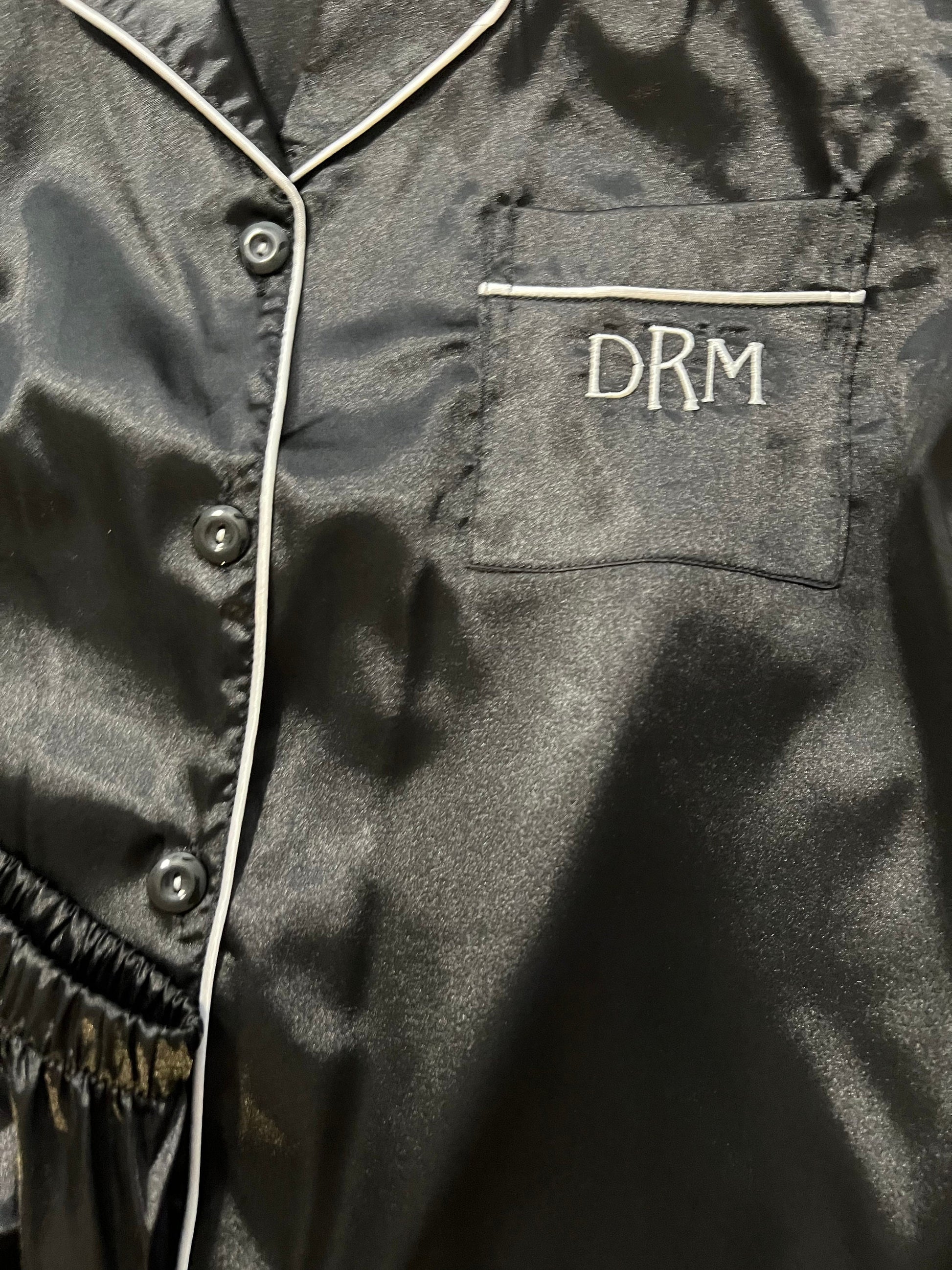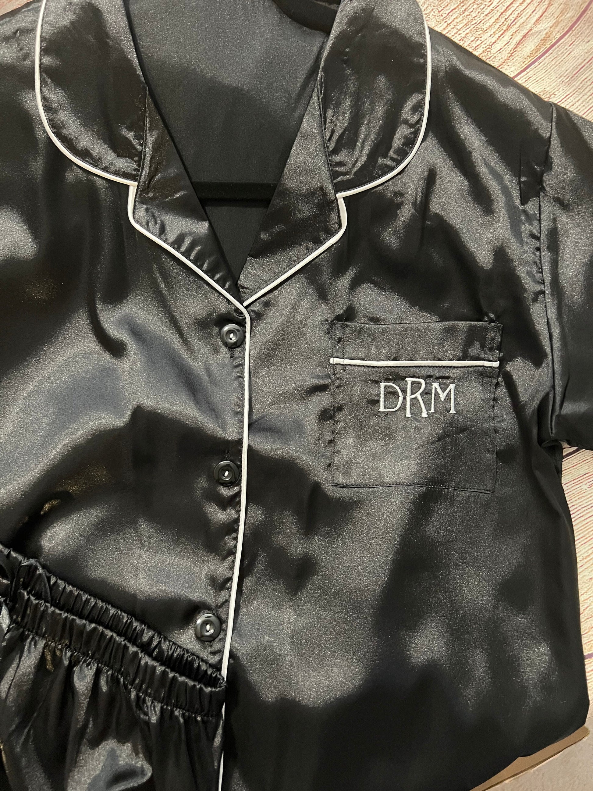 Monogrammed Embroidered pajama shorts set in a pretty feminine satiny fabric.