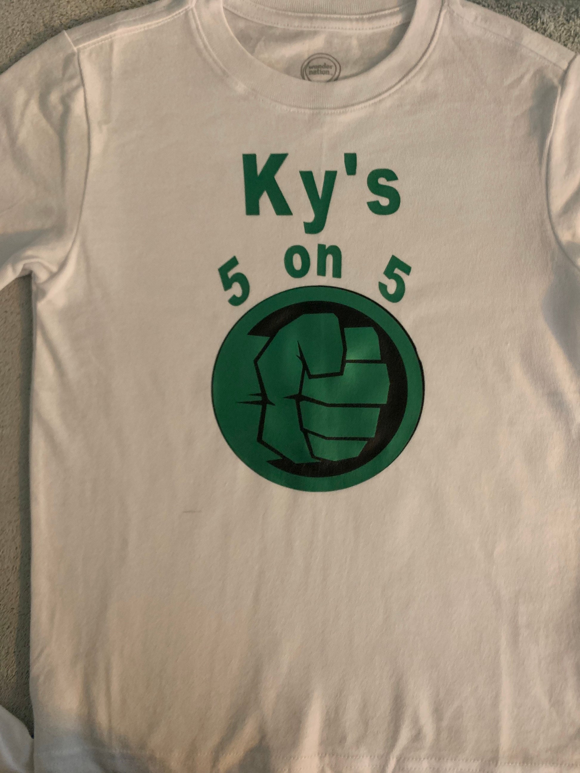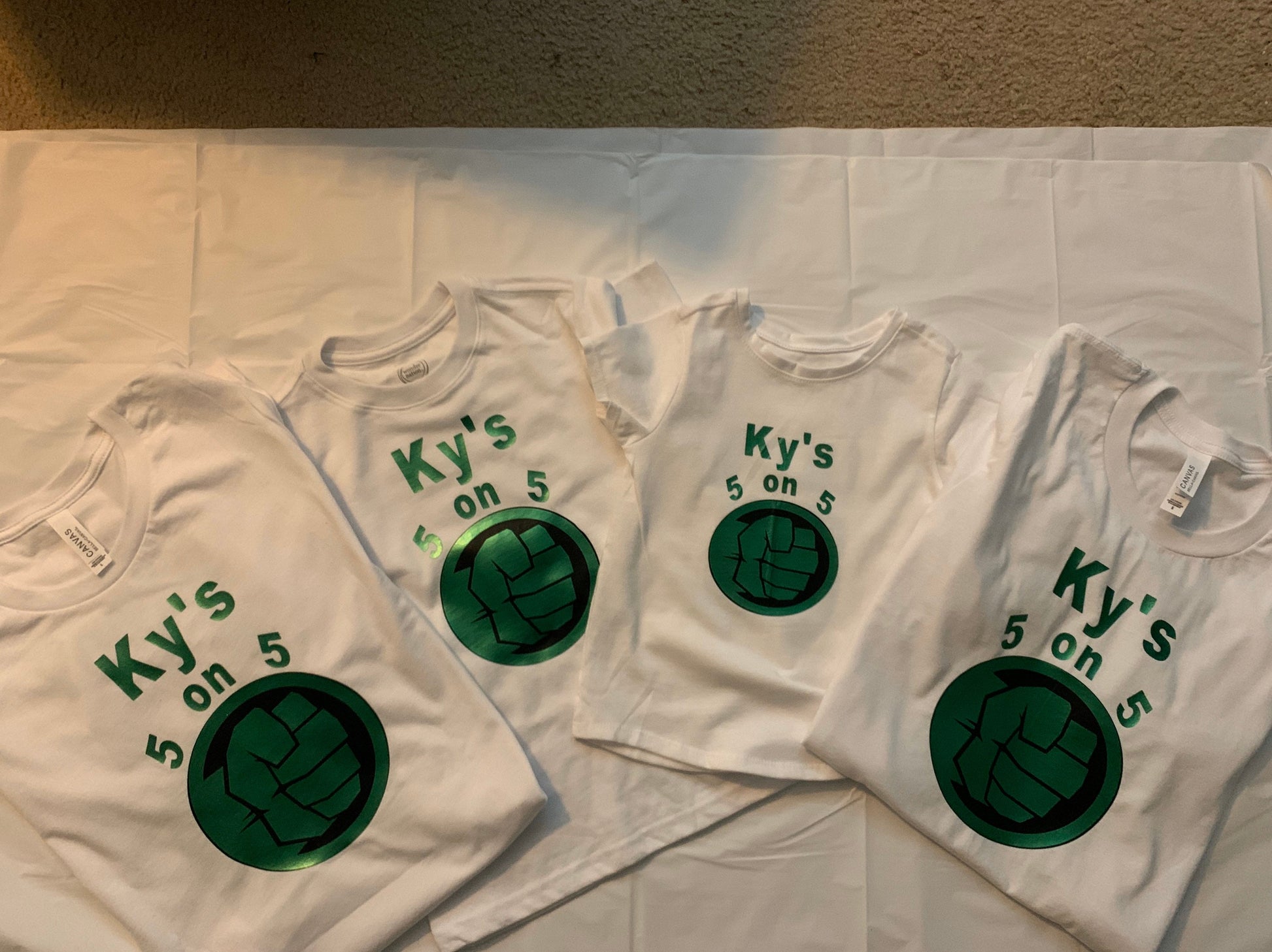 Hulk fist Bday T shirt. Customize your phrase around circle.