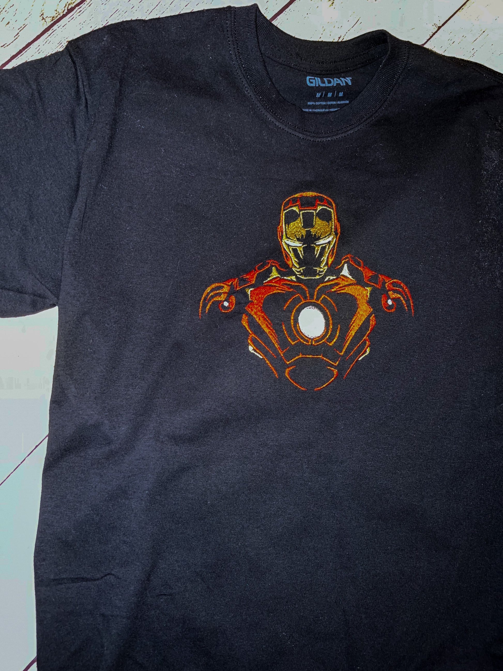 Iron Man Embroidered T-shirt. Fully embroidered design. Looks very cool. Perfect gift or keep for yourself.