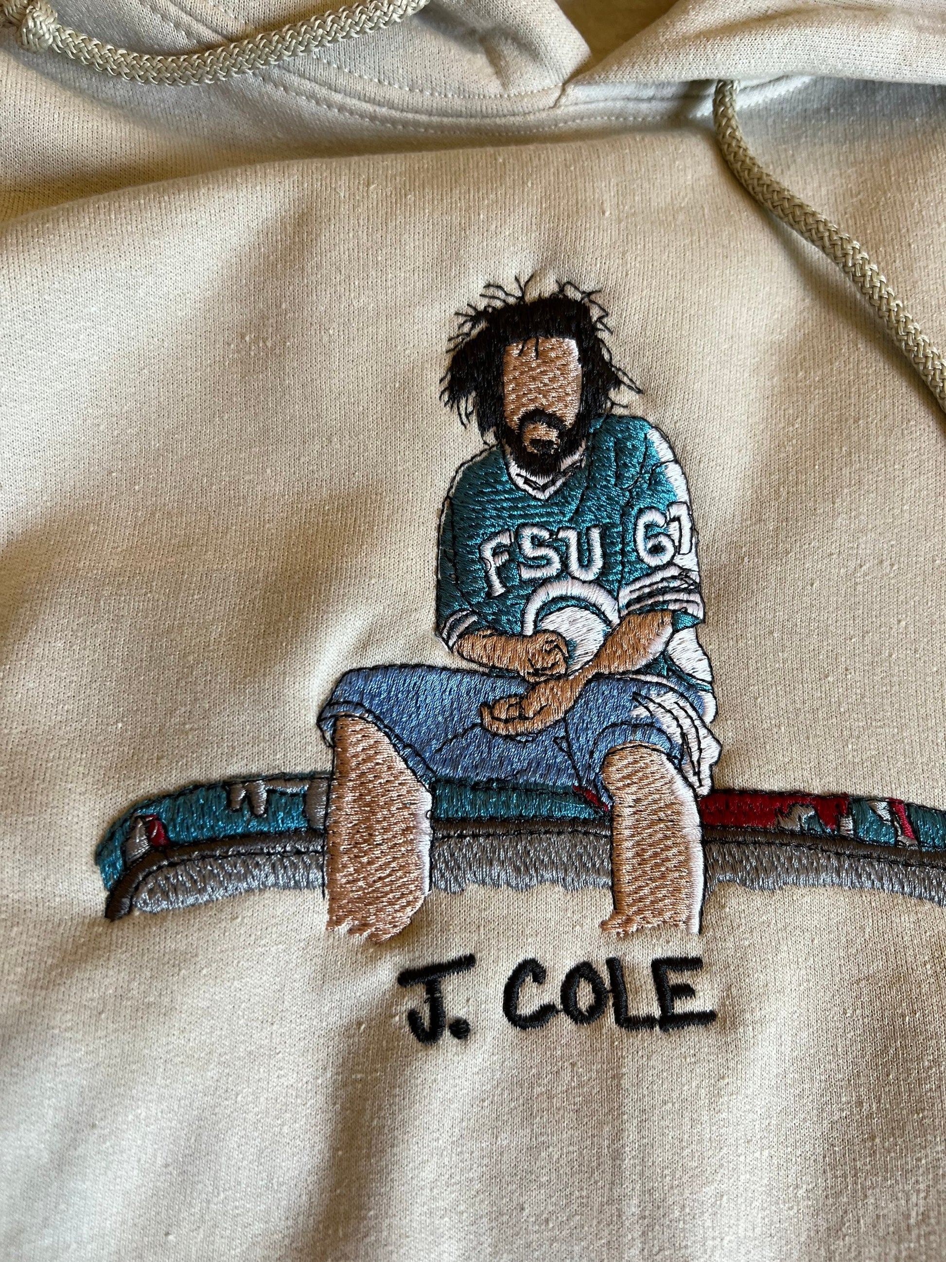 J.Cole embroidered hoodie. Long sleeve, beige, cotton hoodie. Made to order.