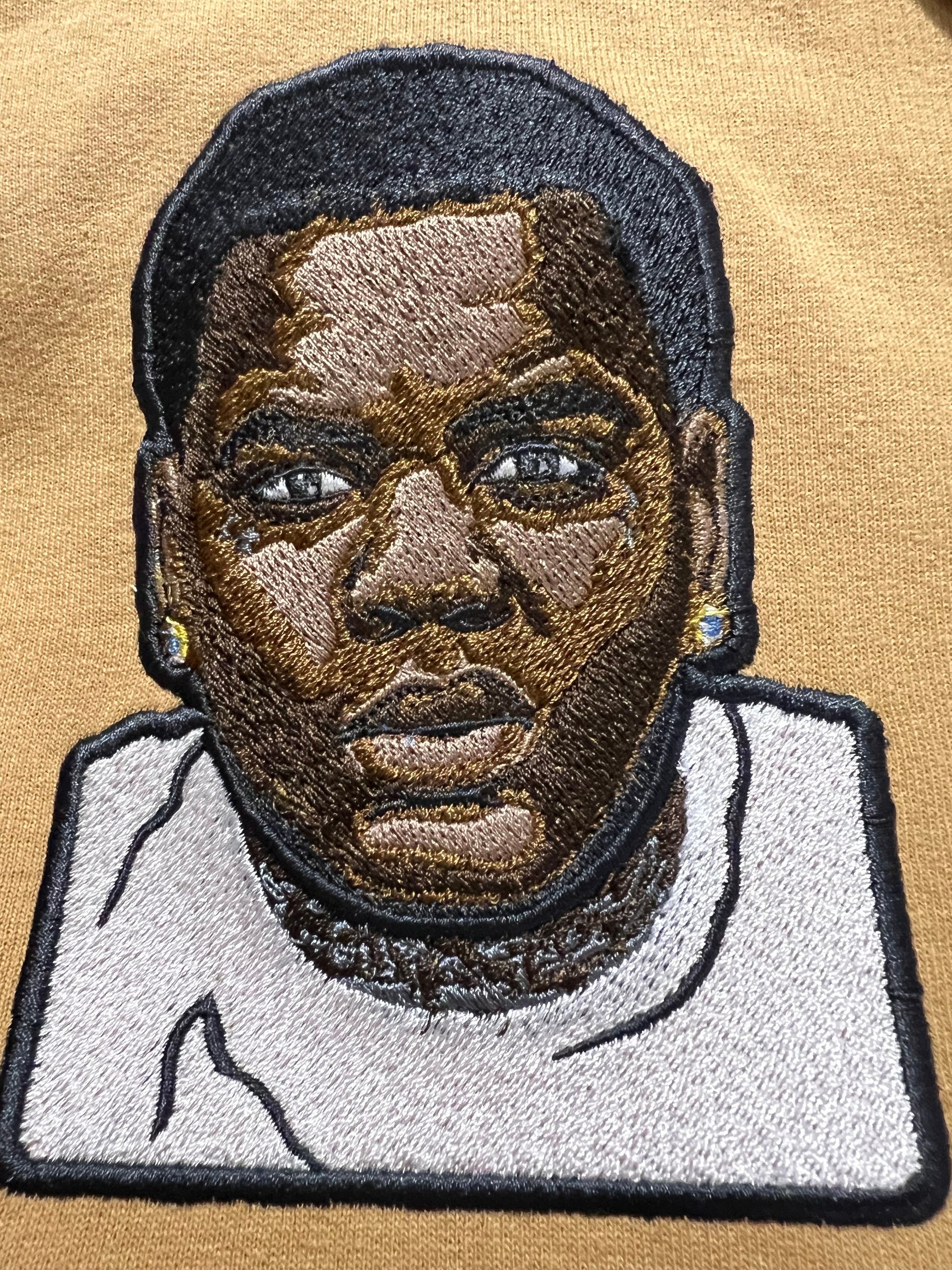 Kevin Gates inspired embroidered hoodie. Long sleeve, old gold, cotton hoodie. Made to order.