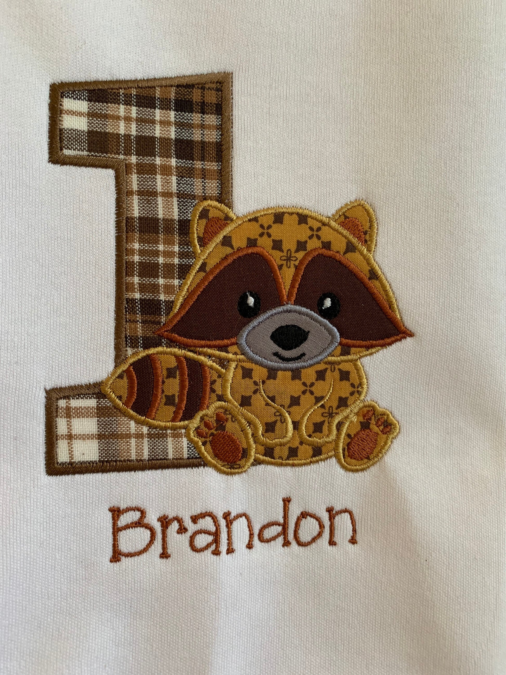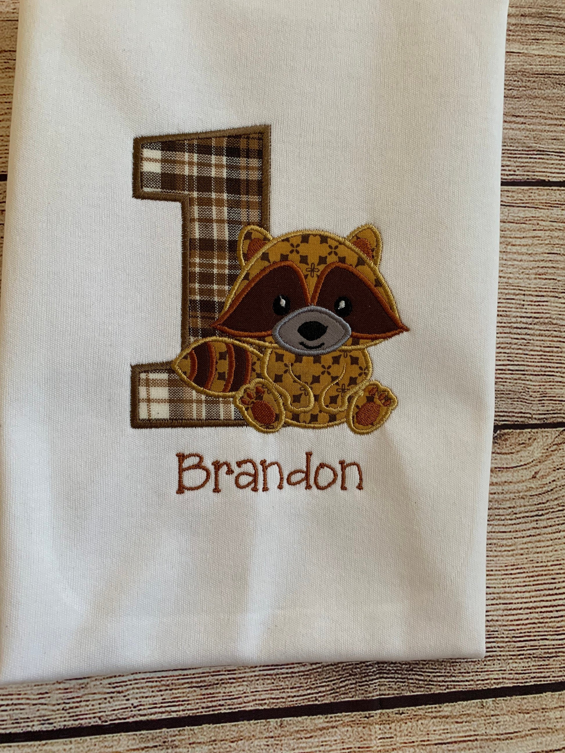 Little Critter Raccoon Birthday T-shirt. Embroidered custom T-shirt. Sizes available: