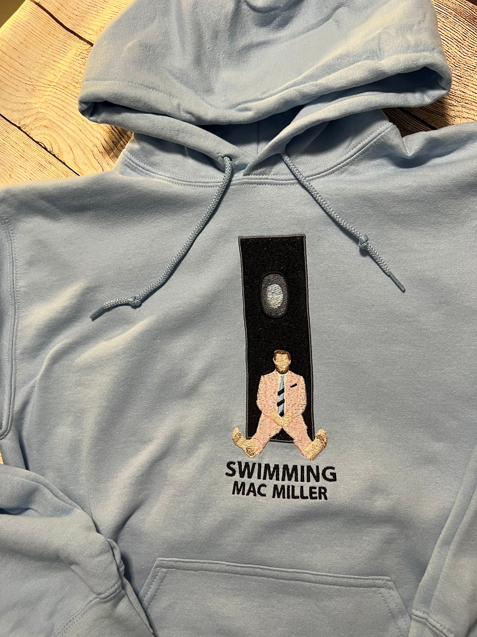 Mac Miller inspired embroidered hoodie. Long sleeve, baby blue, cotton hoodie. Made to order.