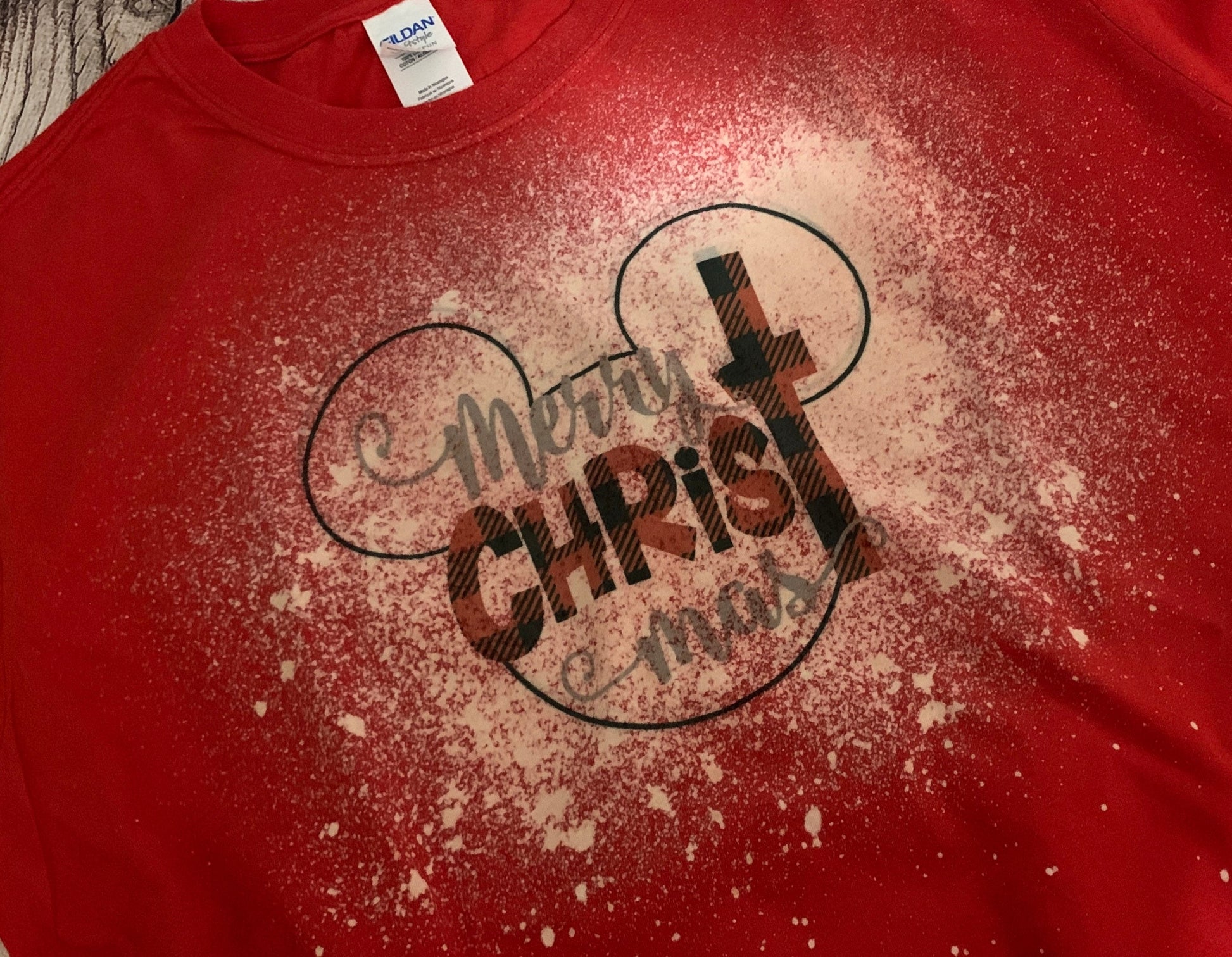 Merry Christ-mas Buffalo Print with Mickey Outline T-shirt.