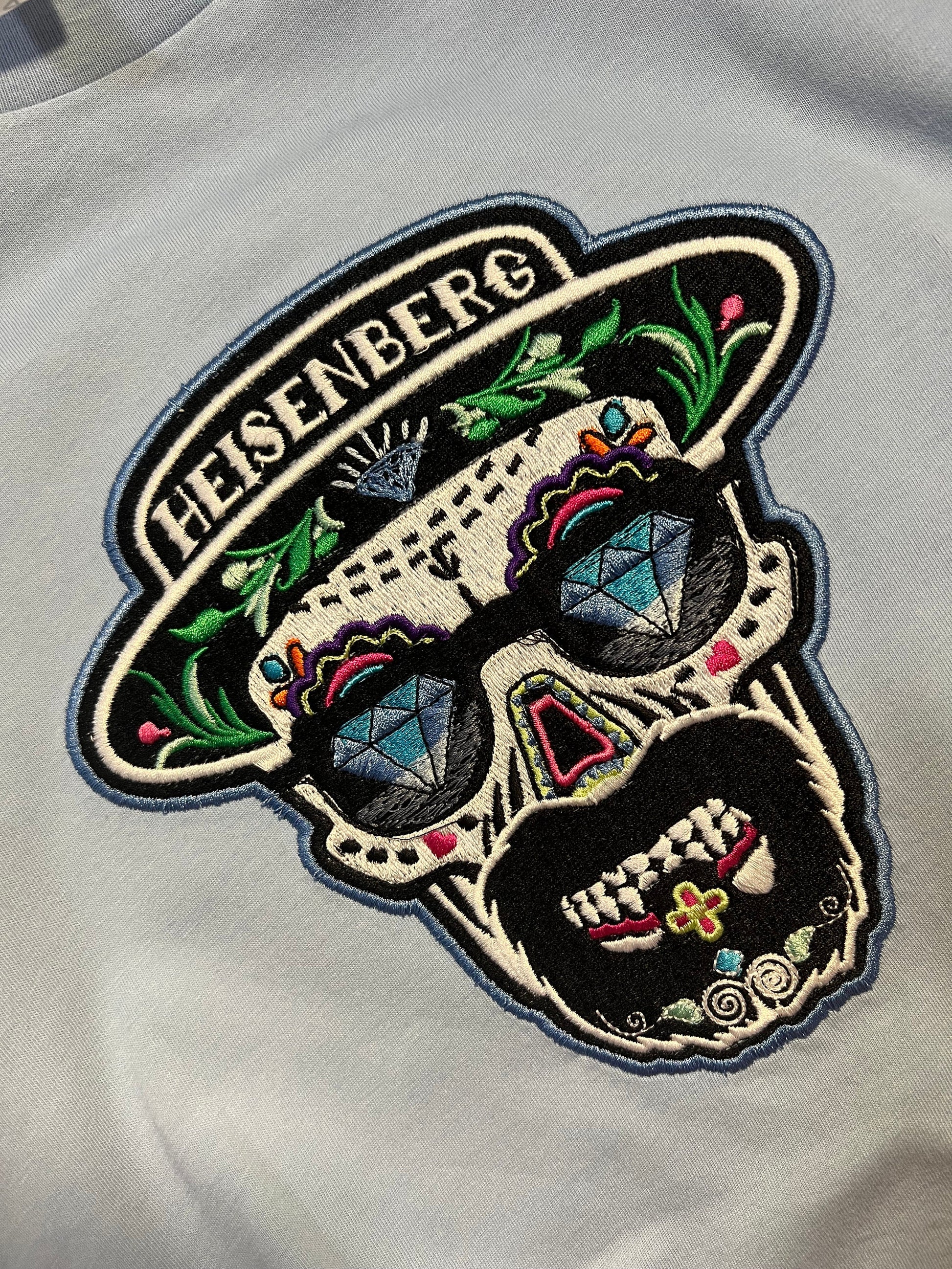 Skull Día de Los Muertos Heisenberg Inspired Embroidered T-shirt. Fully embroidered - very detailed design. Looks very cool. Perfect gift or keep for yourself.