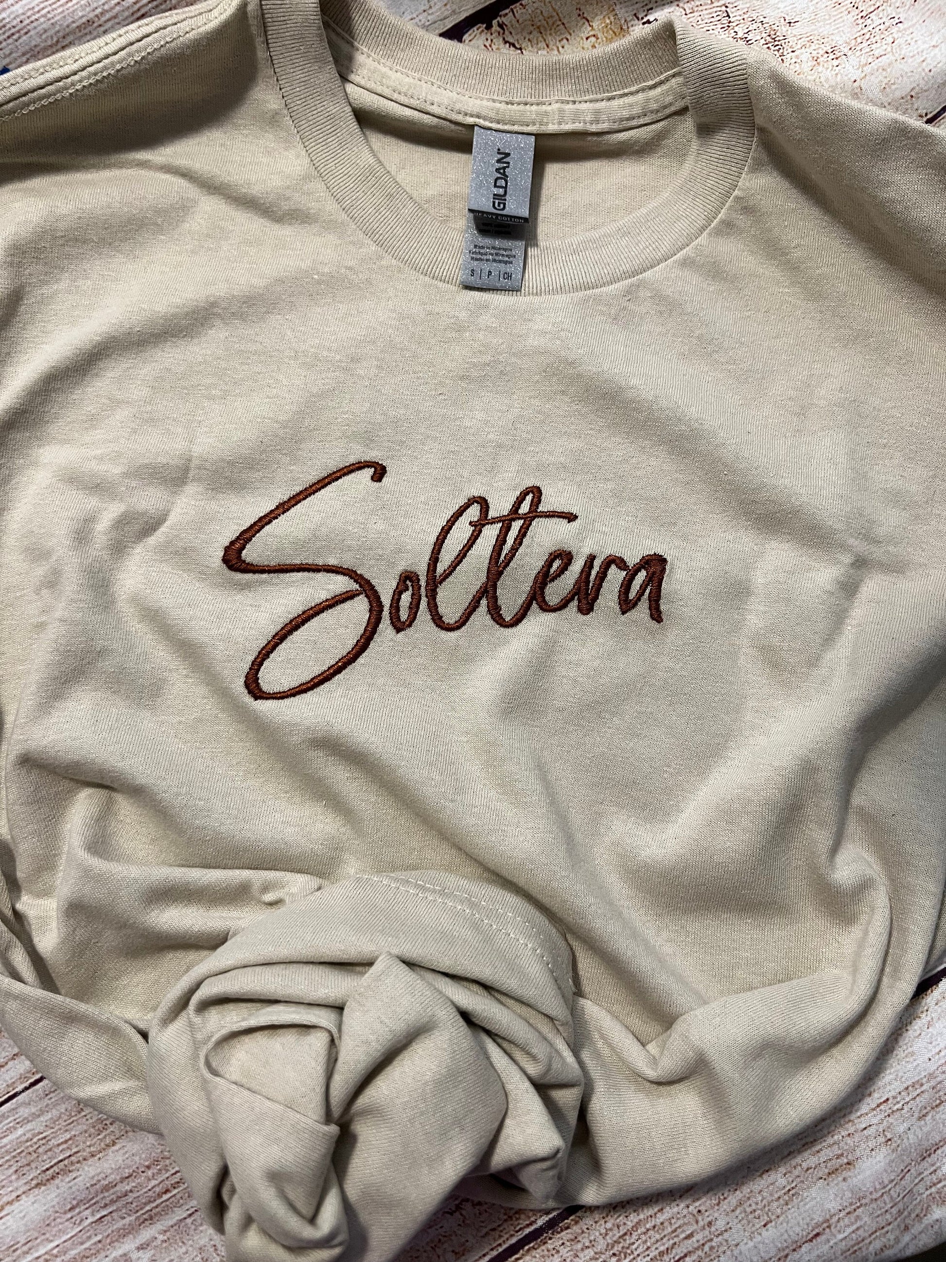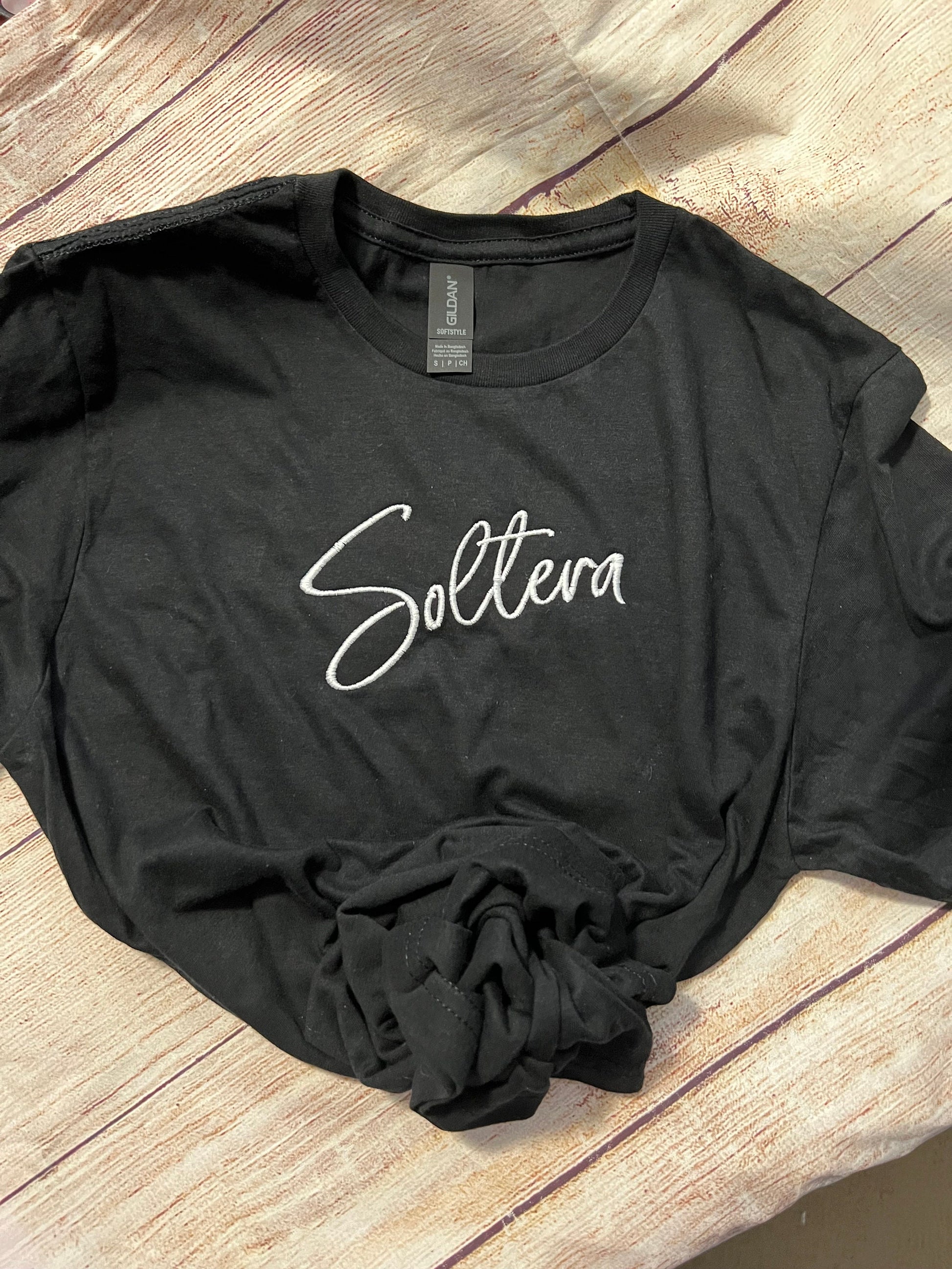 Soltera (Single) Embroidered T-shirt. In Black or Sand T. Wear it Proudly.