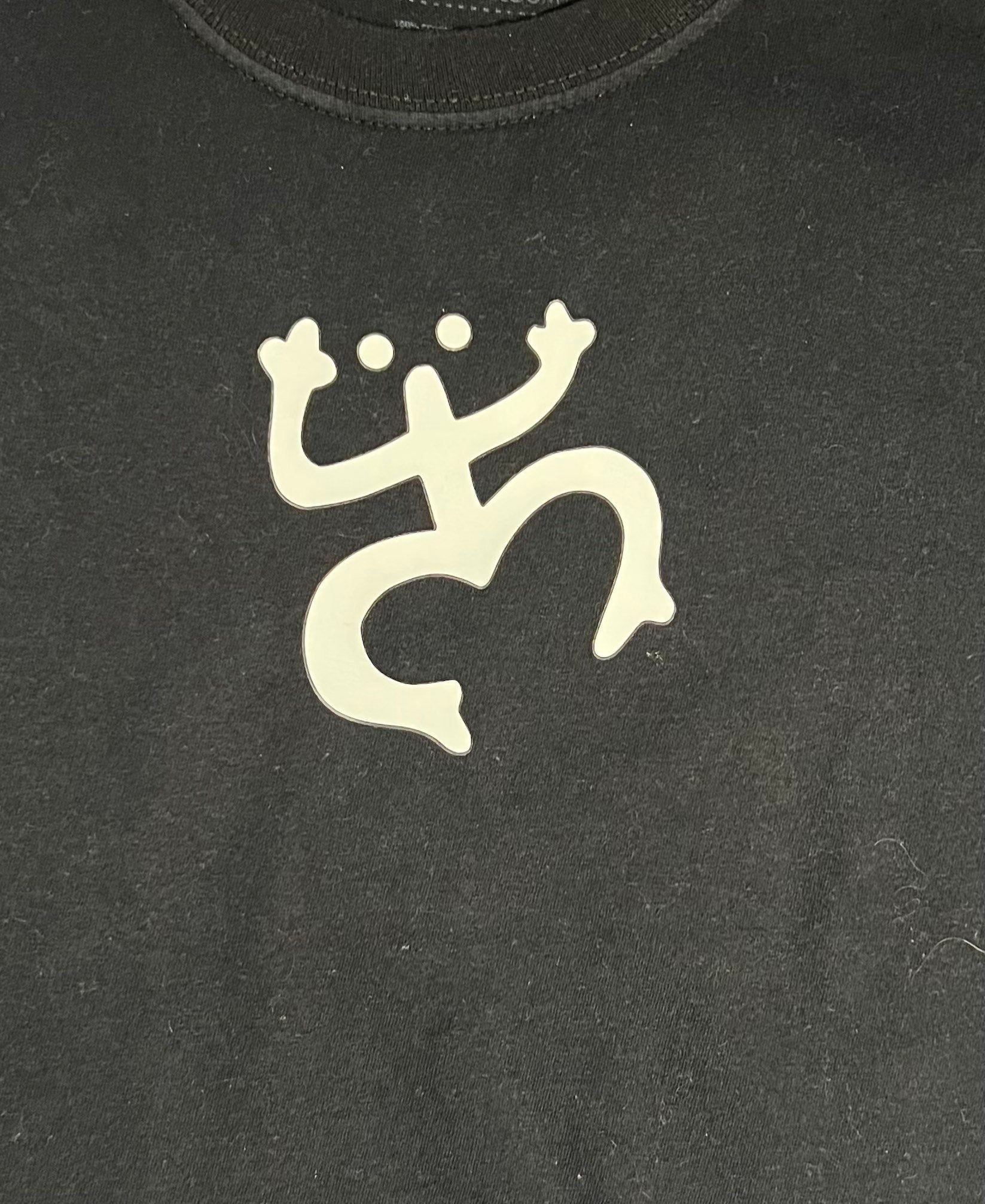Short sleeve cotton T-shirt. Made to order. Shown in black shirt white screen print deign. Can customize color. Black coqui also available.